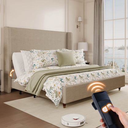 The Luxora Slate Adjustable Bed Frame offers tailored comfort with its adjustable reclining head position, perfect for improving circulation, reducing back strain, and providing ideal support during rest or recovery. The 50" upholstered headboard ensures firm back support, while the user-friendly remote control allows precise angle adjustments from 0 to 55 degrees. With a reinforced metal frame and solid wood slats, this bed offers stability, durability, and a quiet adjustment system for a peaceful sleep. Assembly is quick and easy with the numbered parts and clear instructions provided.