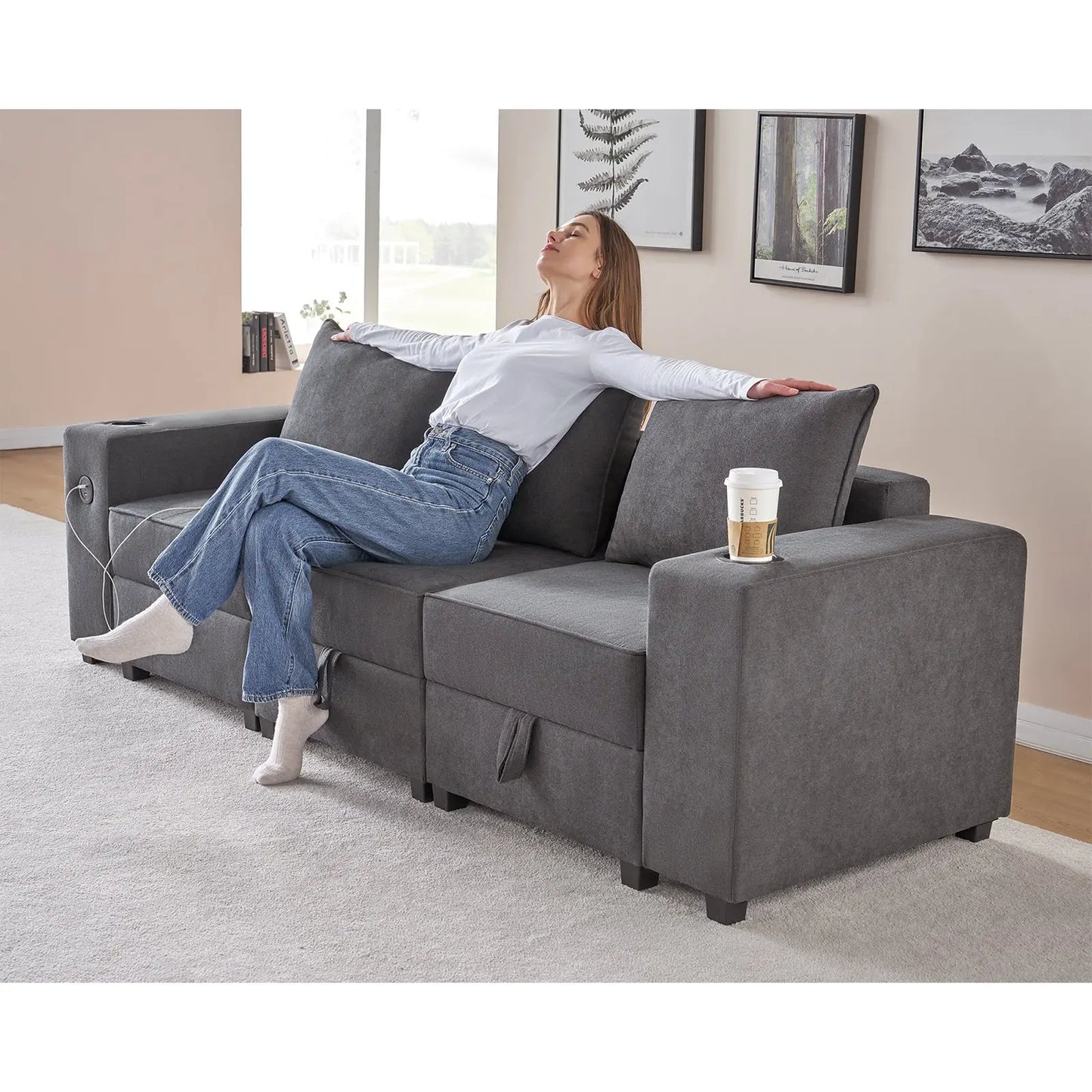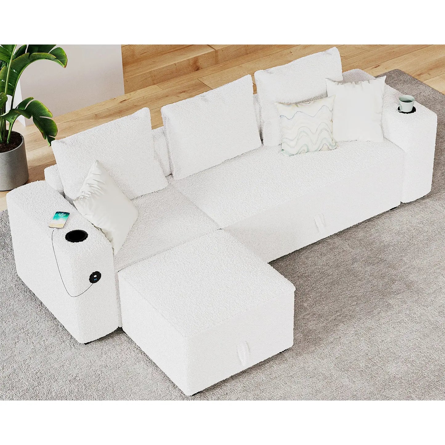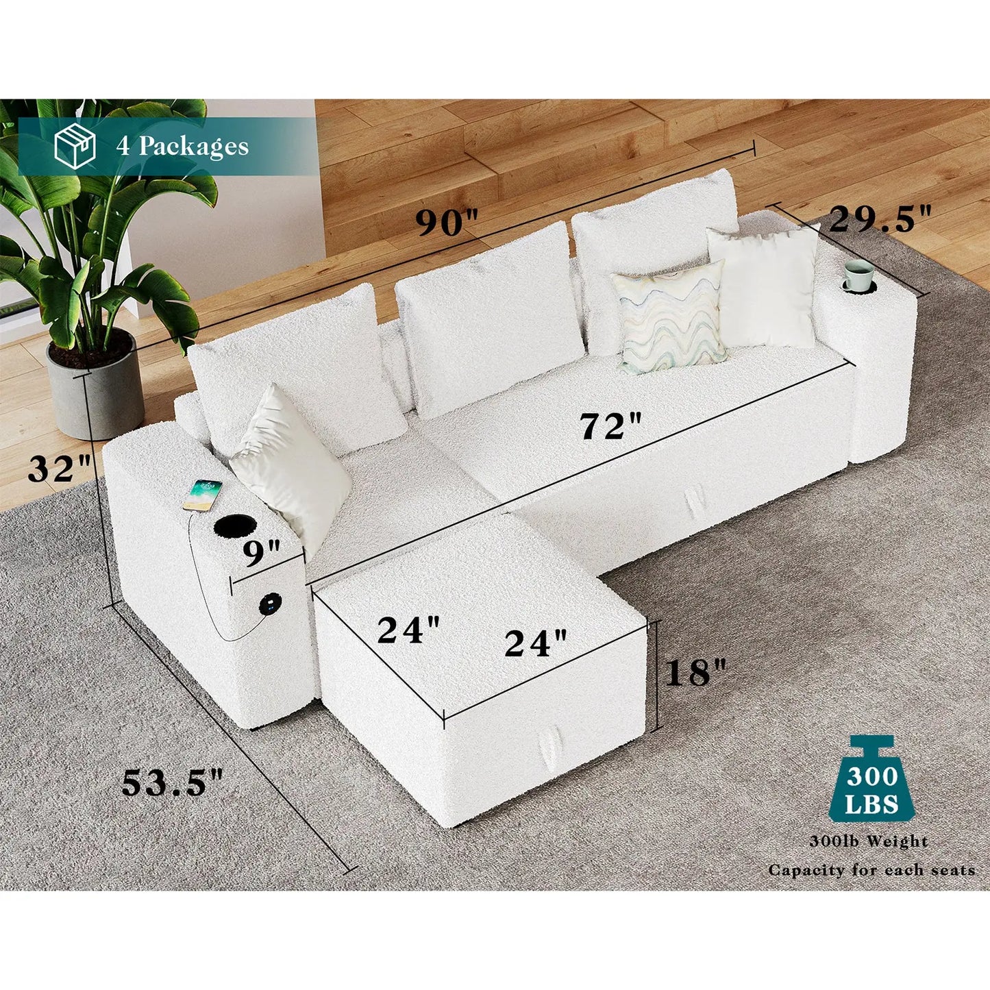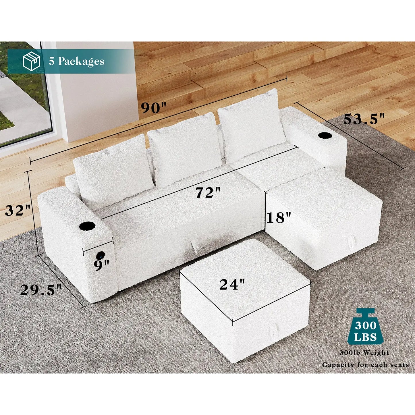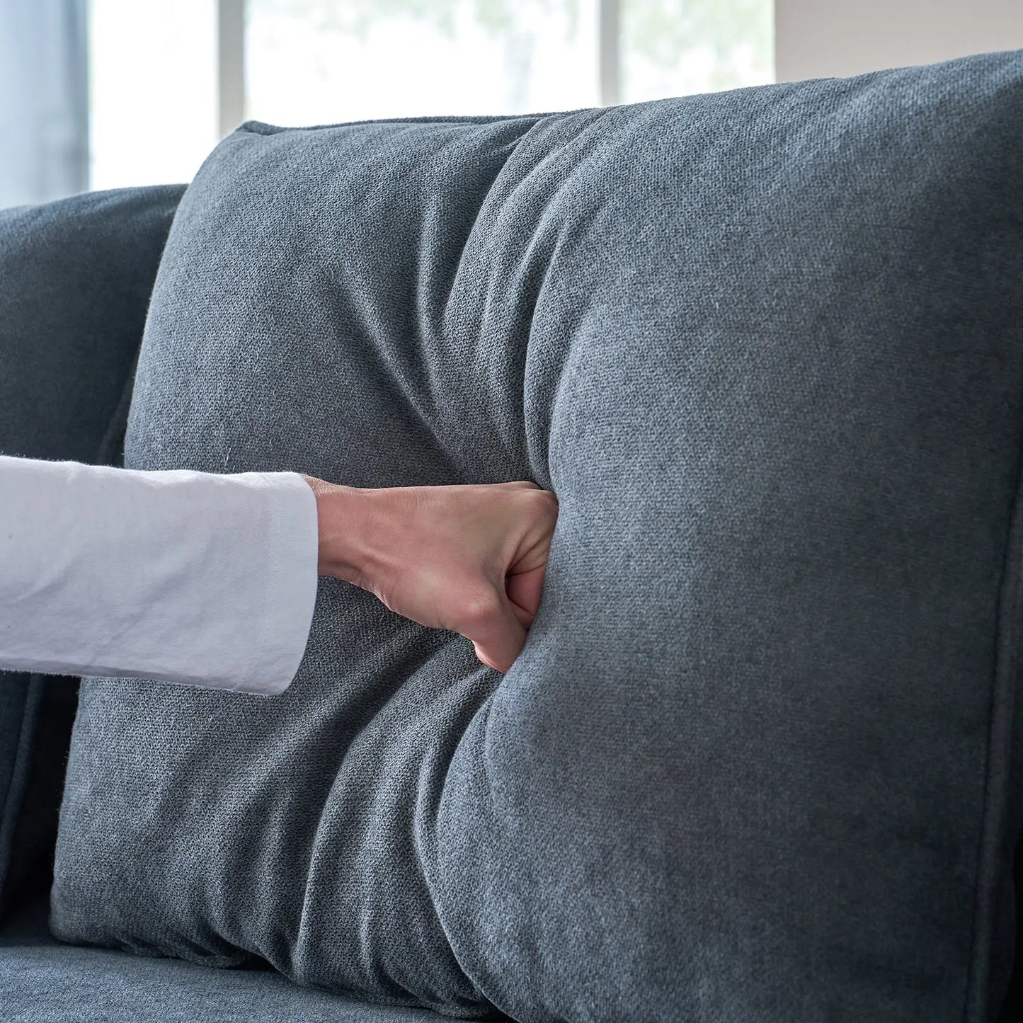 Sweep Sectional Sofa features a modular design that can be taken apart and transformed into multiple shapes to meet your different needs, providing you with flexibility and versatility. The frame is constructed from solid laminate hardwood for long-lasting strength and stability. With a weight capacity of 300 pounds per seat, you can rest, relax, and even jump on the couch with confidence.