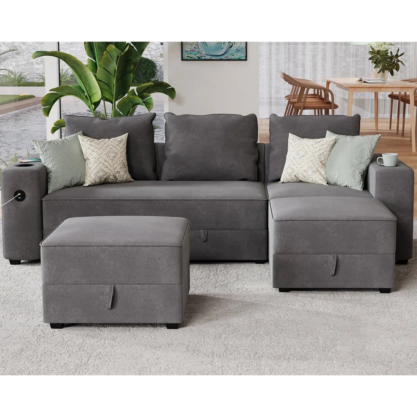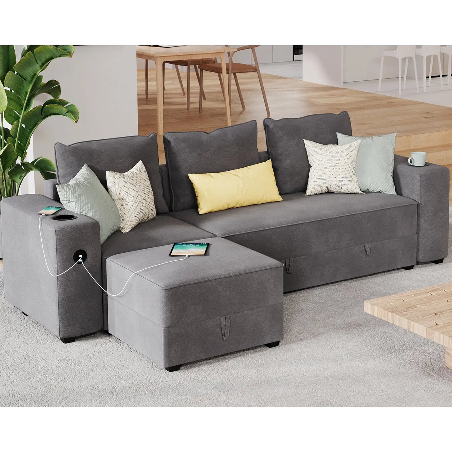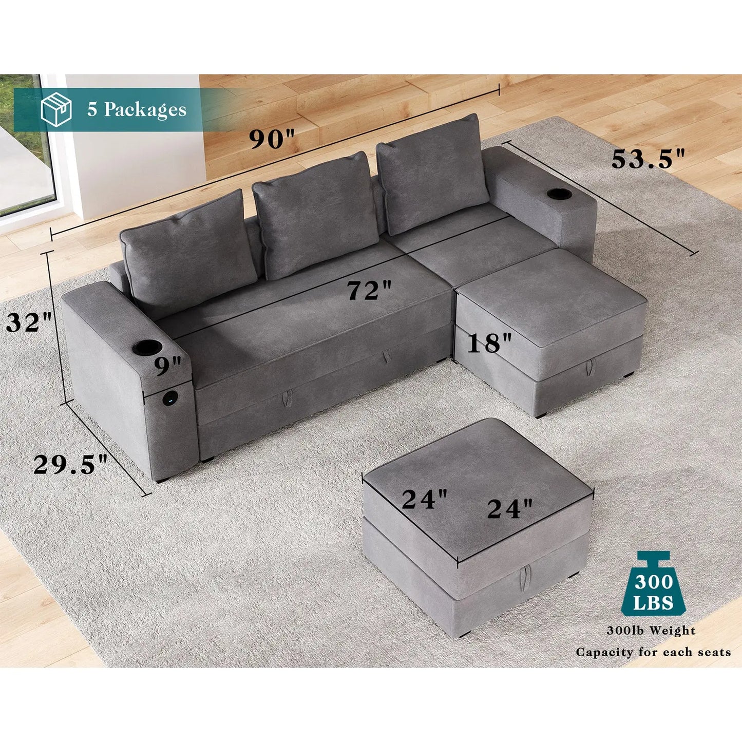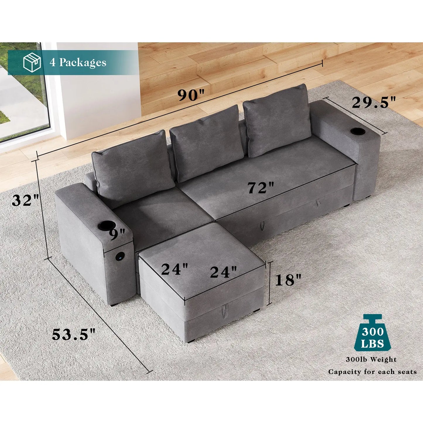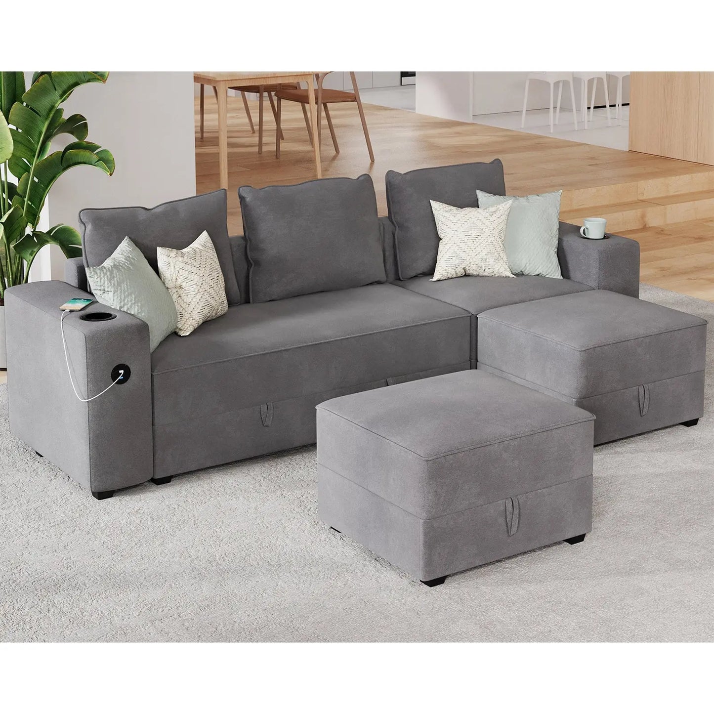 Sweep Sectional Sofa features a modular design that can be taken apart and transformed into multiple shapes to meet your different needs, providing you with flexibility and versatility. The frame is constructed from solid laminate hardwood for long-lasting strength and stability. With a weight capacity of 300 pounds per seat, you can rest, relax, and even jump on the couch with confidence.