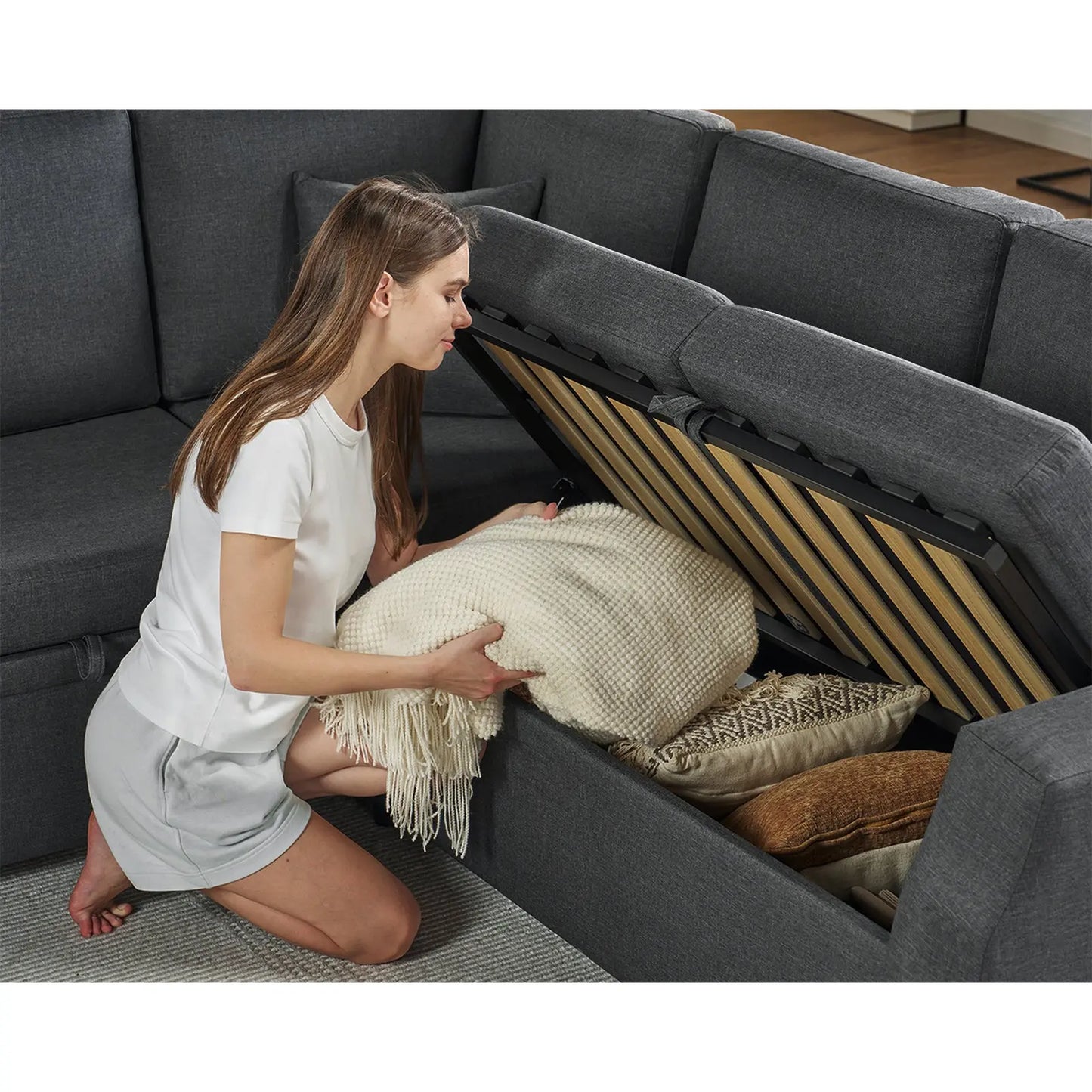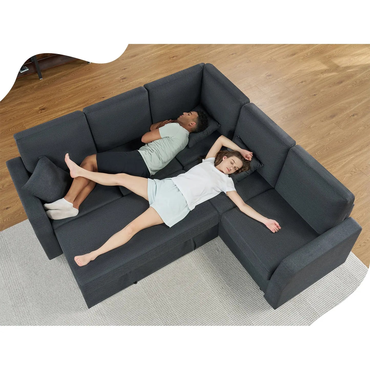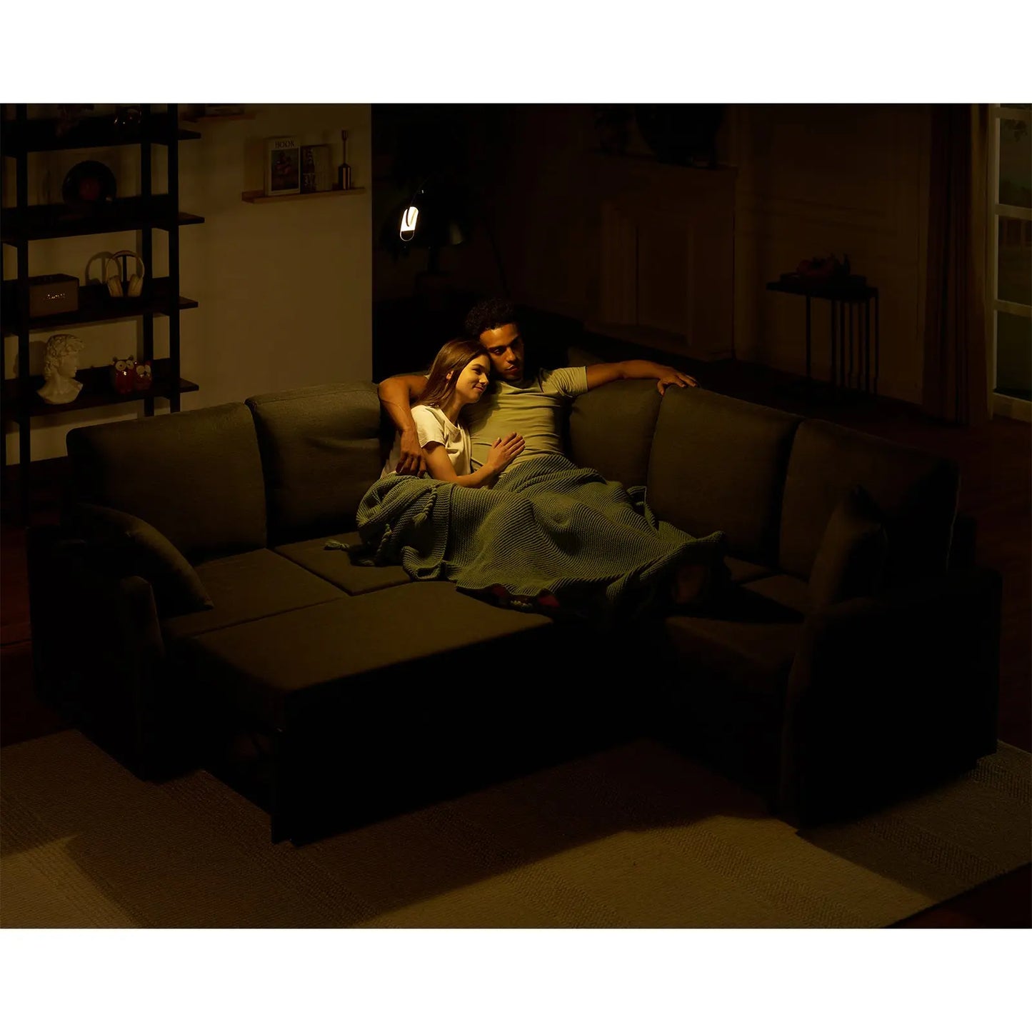 Designed with families in mind, 85″ W × 85″ D overseized sofa offers stylish corner and generous seating space for 5 people at least. Quickly converts into large sofa bed, offering roomy area to stretch out and roll freely.