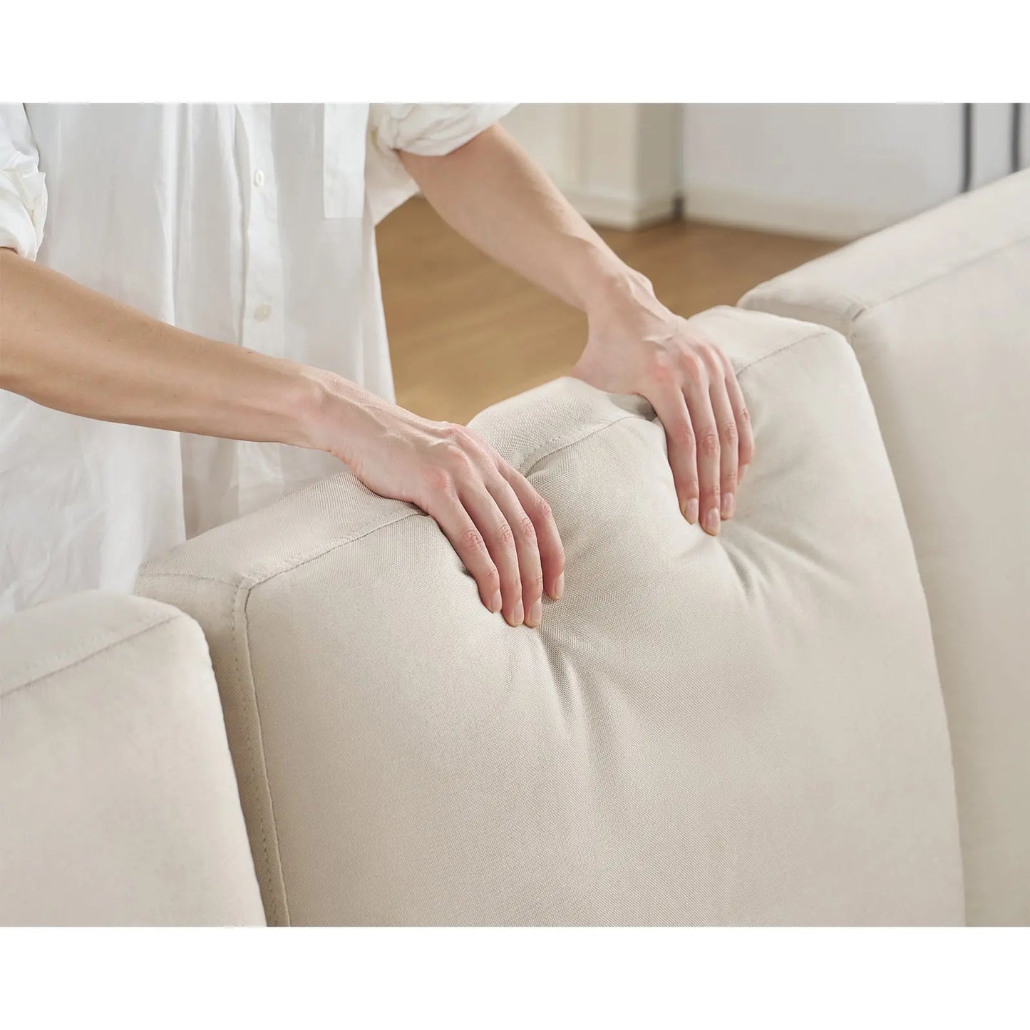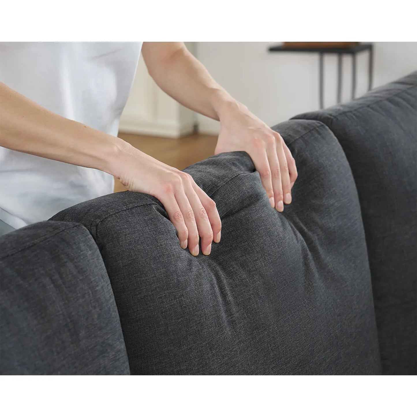 Convertible sofa bed equipped with 32D high density foam cushion, thick backrest & extra 3 throw pillows, providing supportive comfort, envelop you in warmth and softness, reminiscent of cloud.