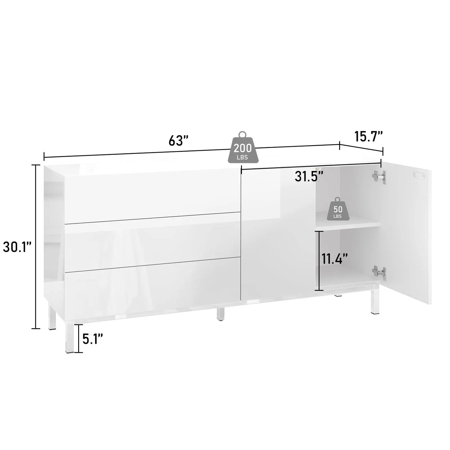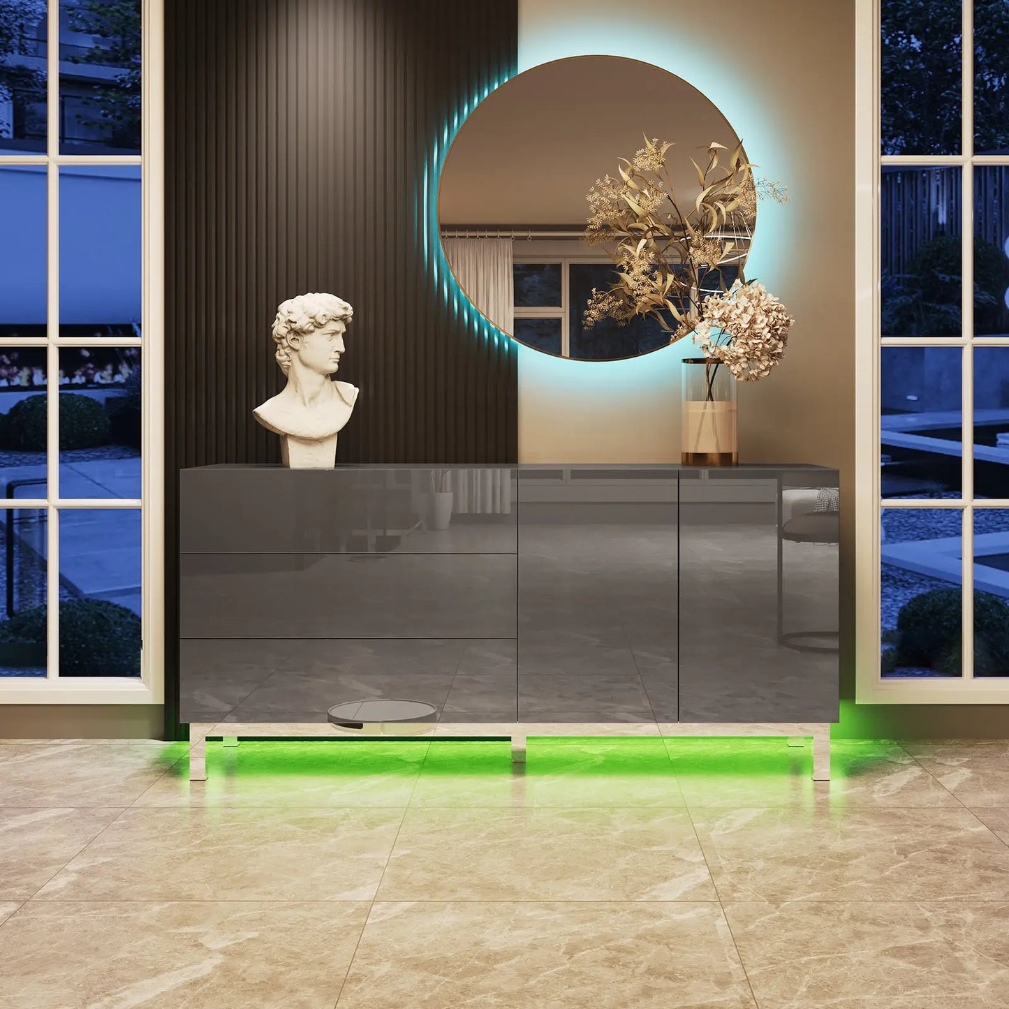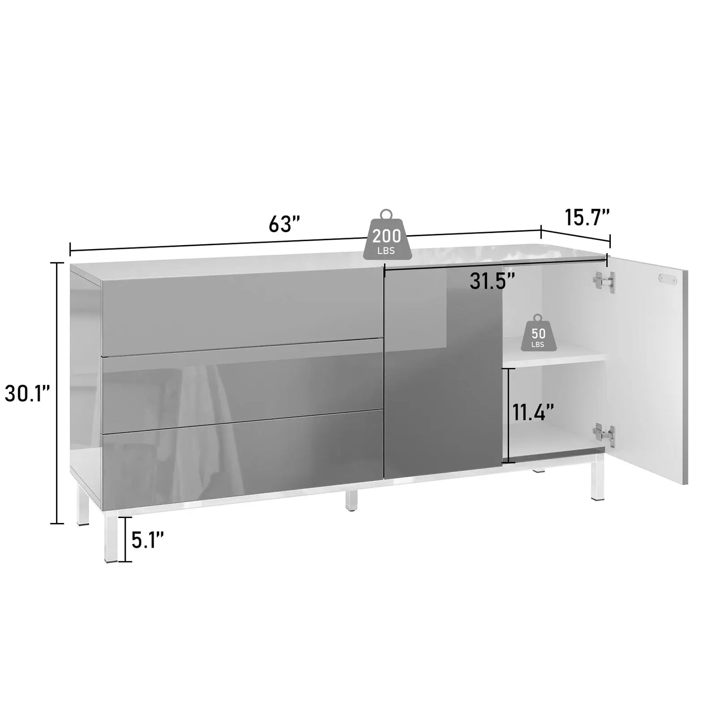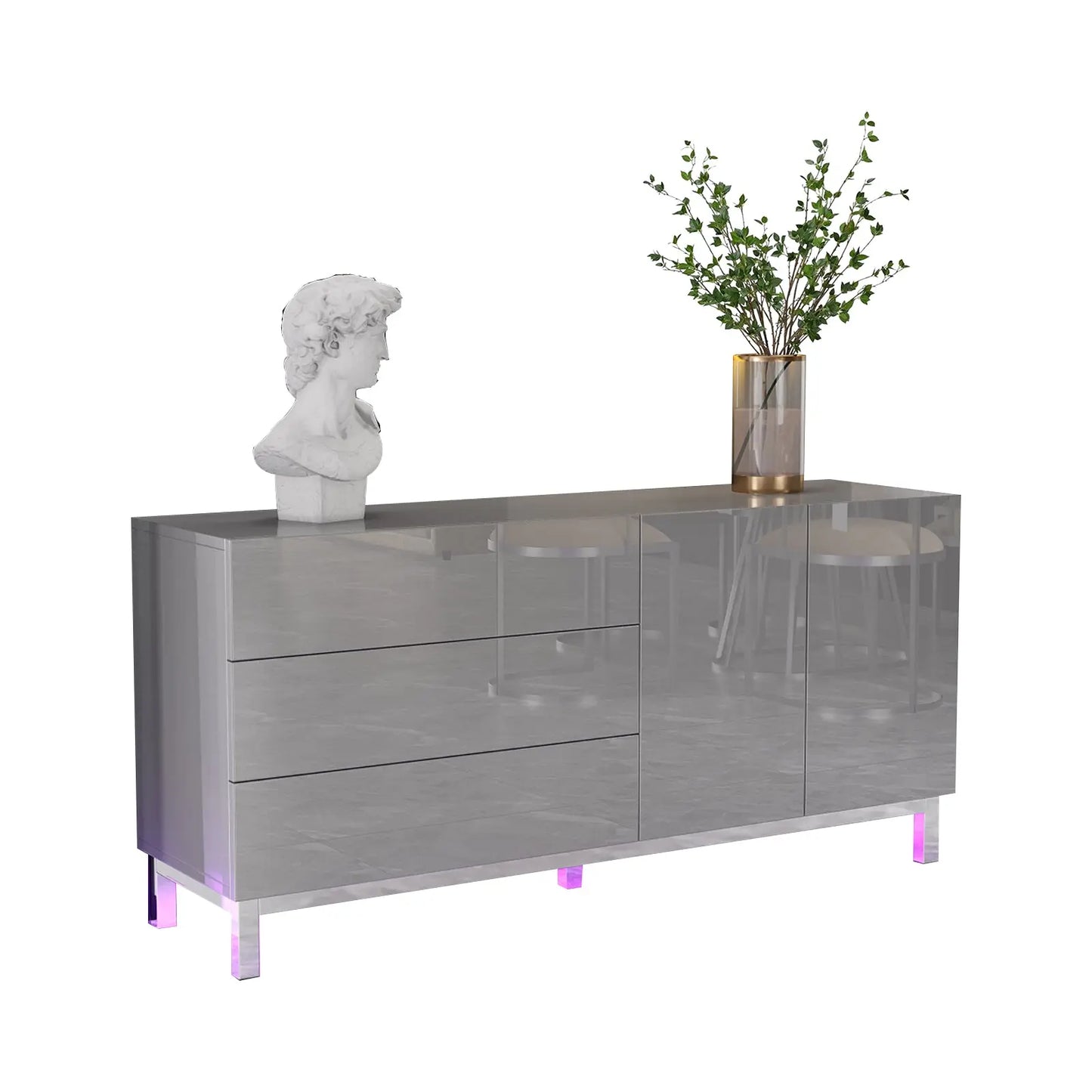 Unique shining full chromed base & legs bring an extra luxury sense to the sideboard cabinet while ensuring outstanding stability, durability, and rust-proof.