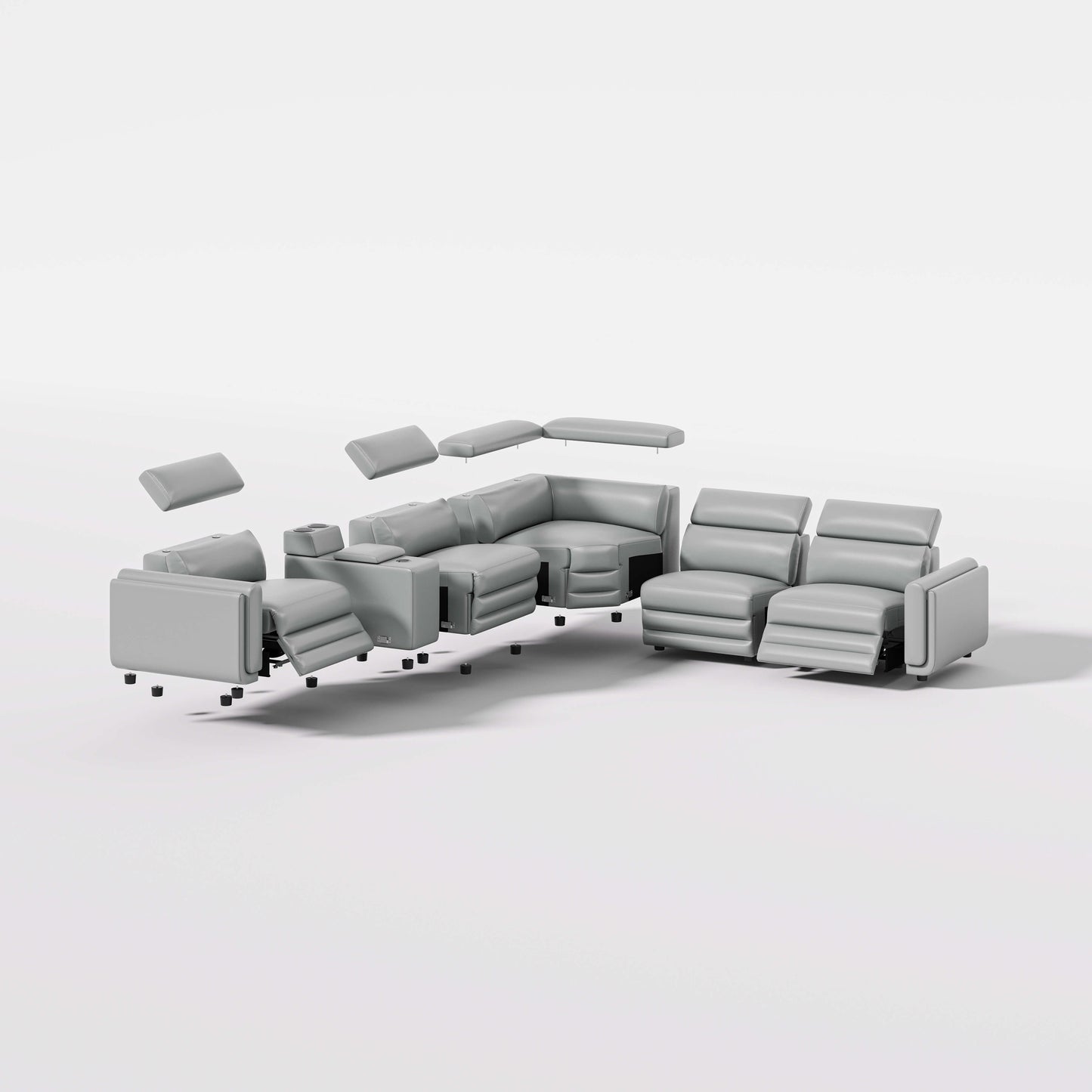 The Vesper Dual Power Electric Reclining Sofa redefines comfort and luxury with its oversized 30¡± wide seats and 5-level adjustable headrests, offering personalized relaxation. Featuring dual power recliners, effortlessly adjust to your preferred angle at the push of a button, while built-in USB and Type-C ports keep your devices charged. The multifunctional console is equipped with three Bluetooth speakers, a control panel, and hidden storage for added convenience. Upholstered in premium leathaire, this sofa is soft, breathable, and easy to maintain, blending elegance with durability. The refined modern design, detailed stitching, and spacious corner seat make the Vesper sectional the ultimate choice for lounging in style.
