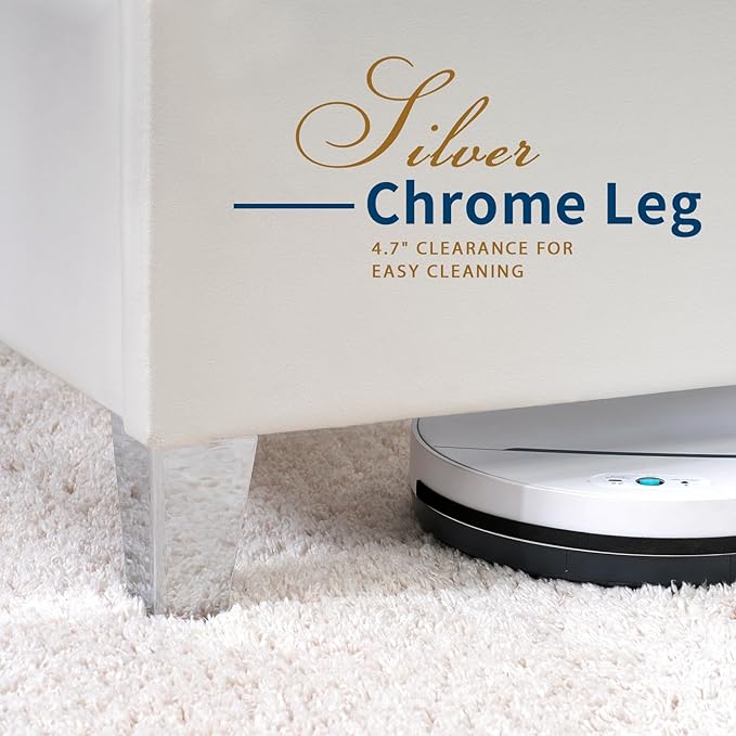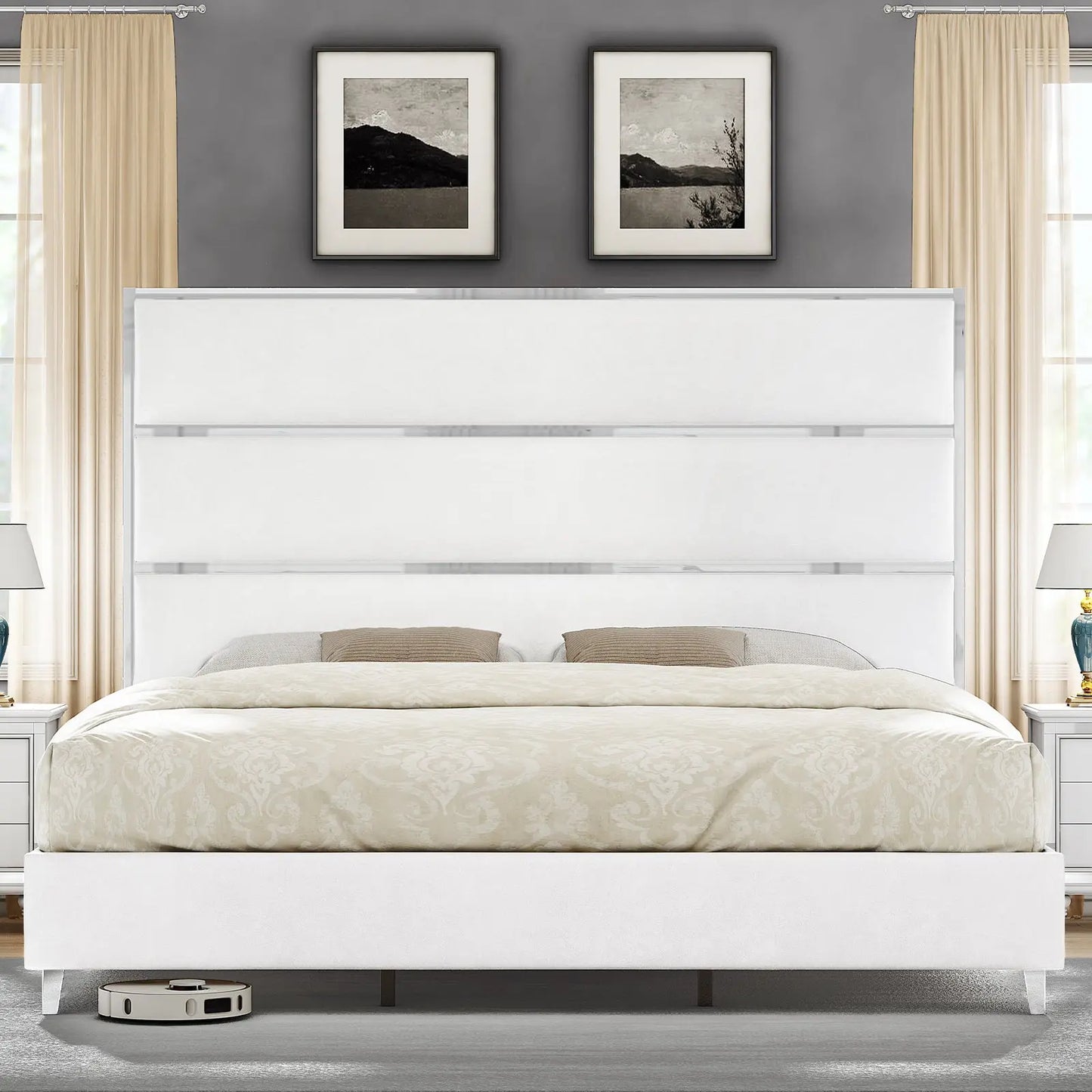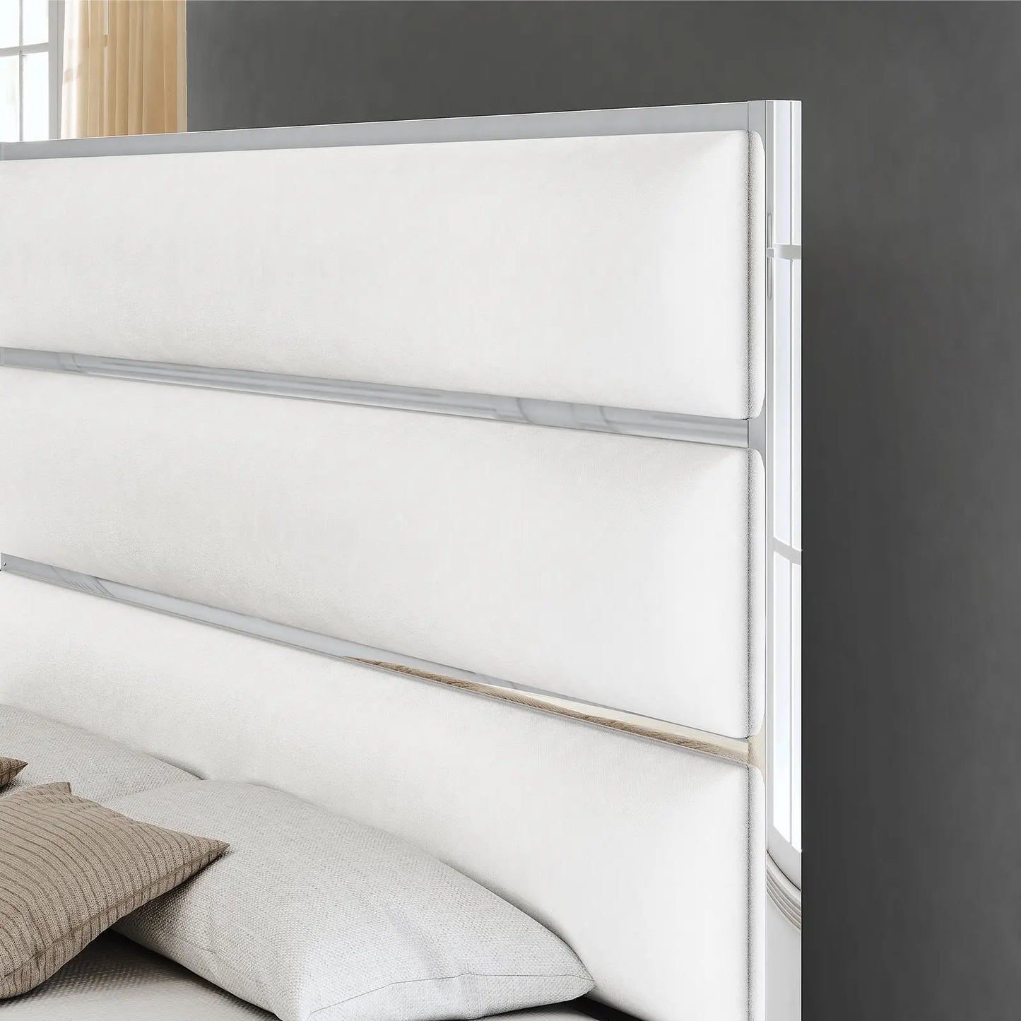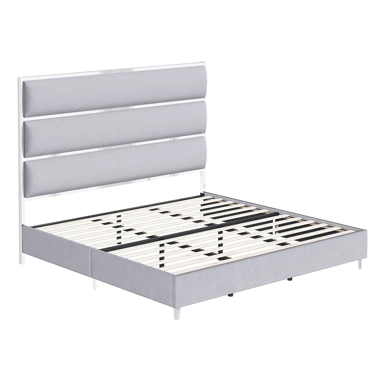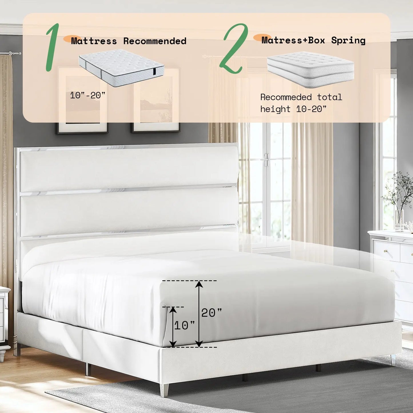 Unique reflective chrome frame supports velvet headboard, modern and elegant, stealing spotlight in your bedroom decor.
