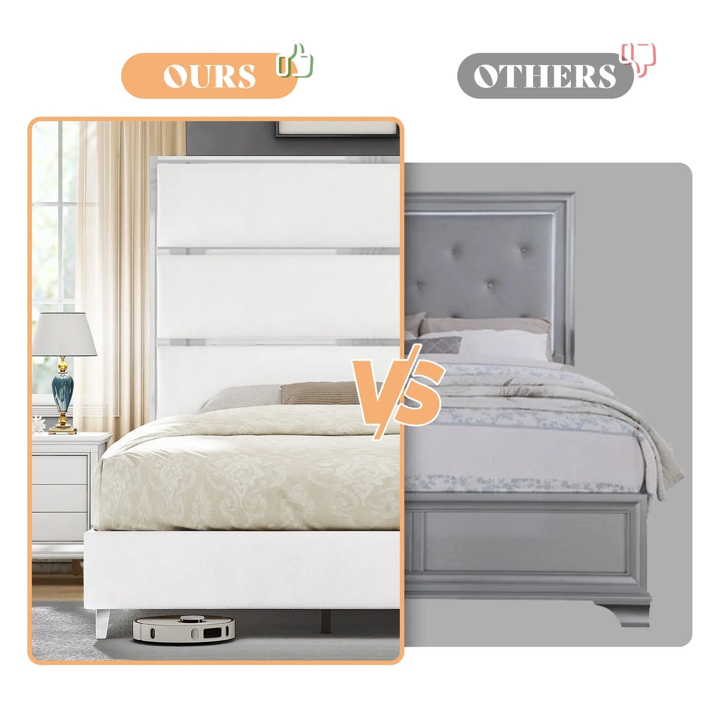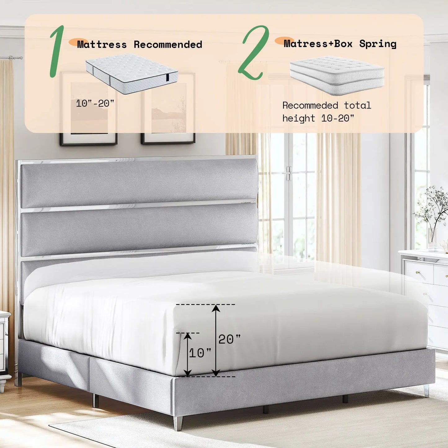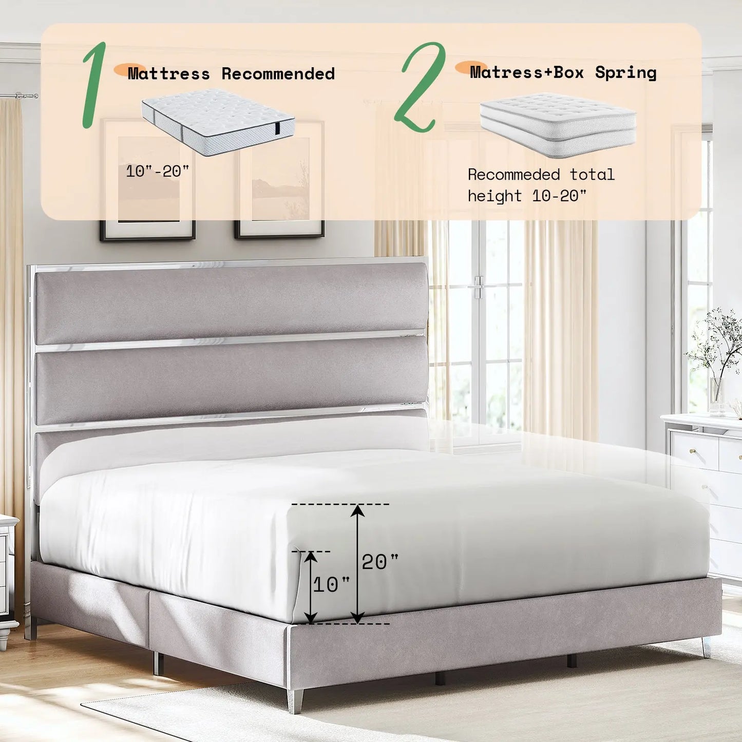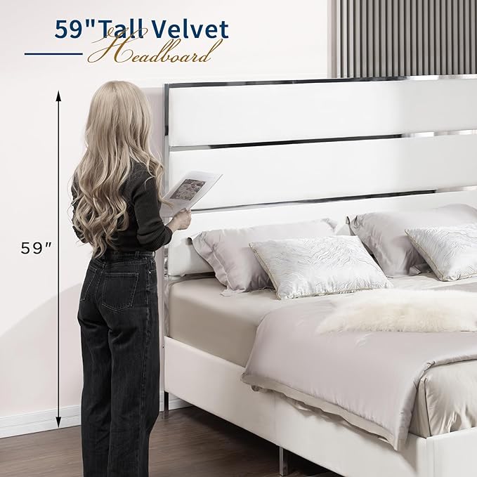 Extra tall 59" headboard with velvet upholstery makes your bed the centerpiece of bedroom, providing much more comfortable support.
