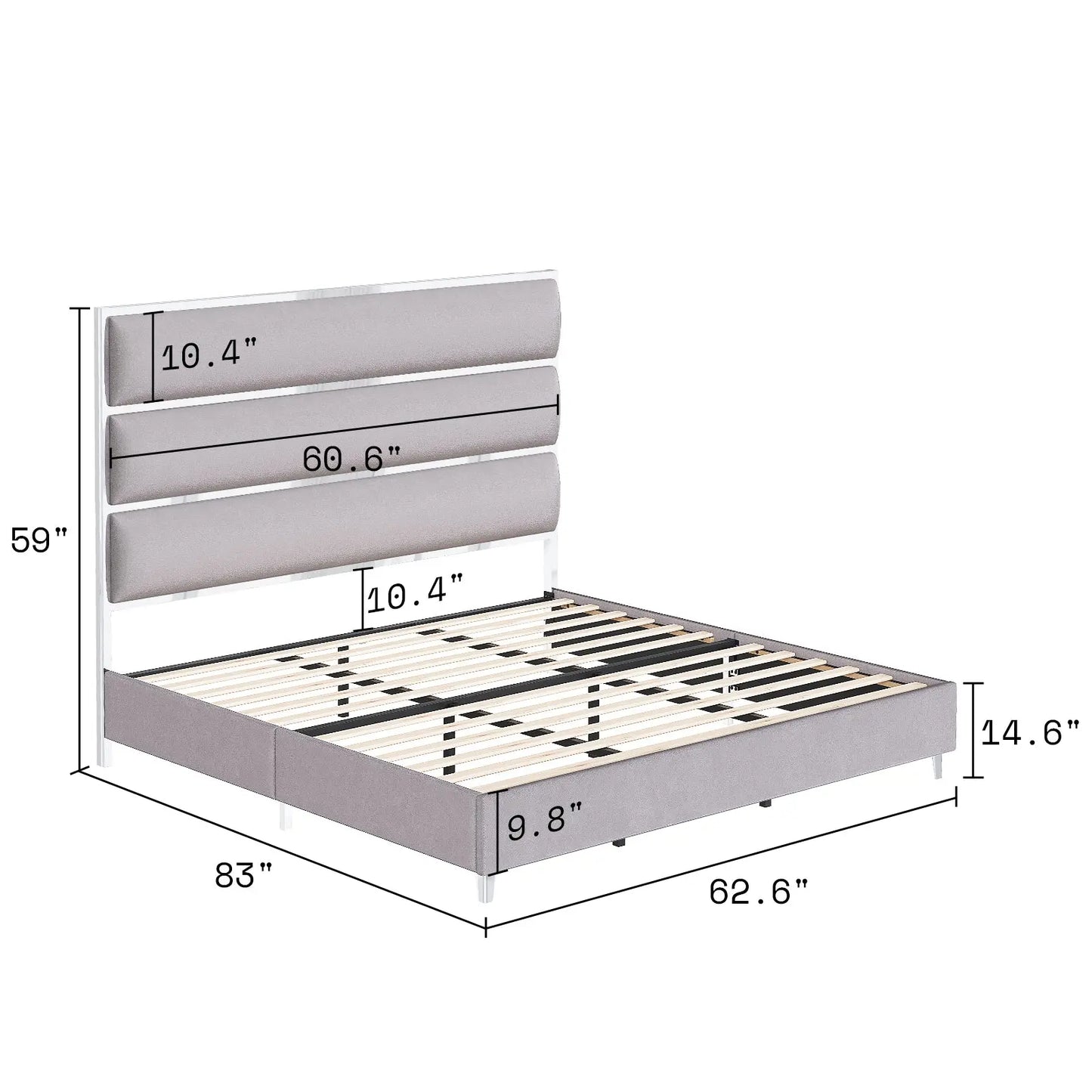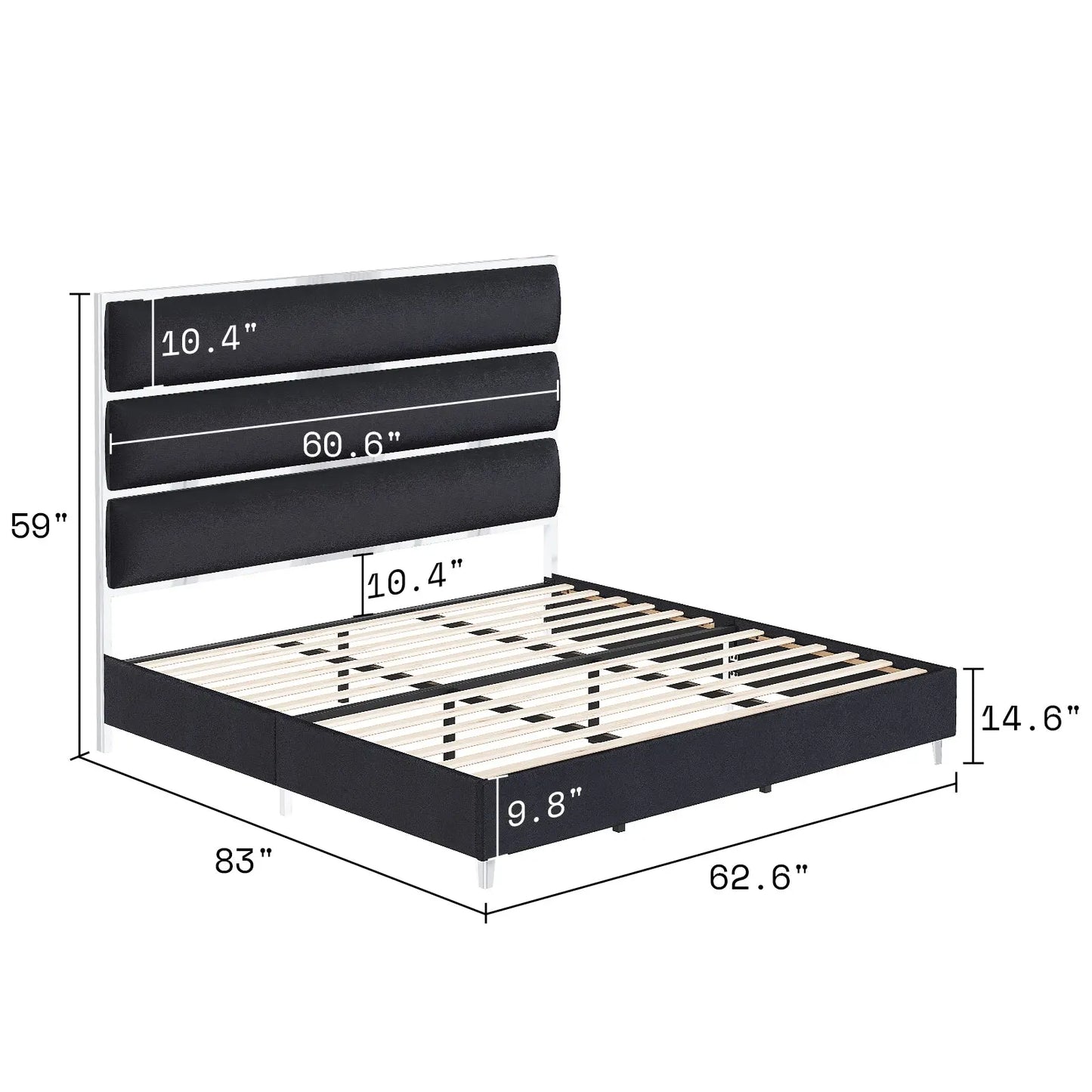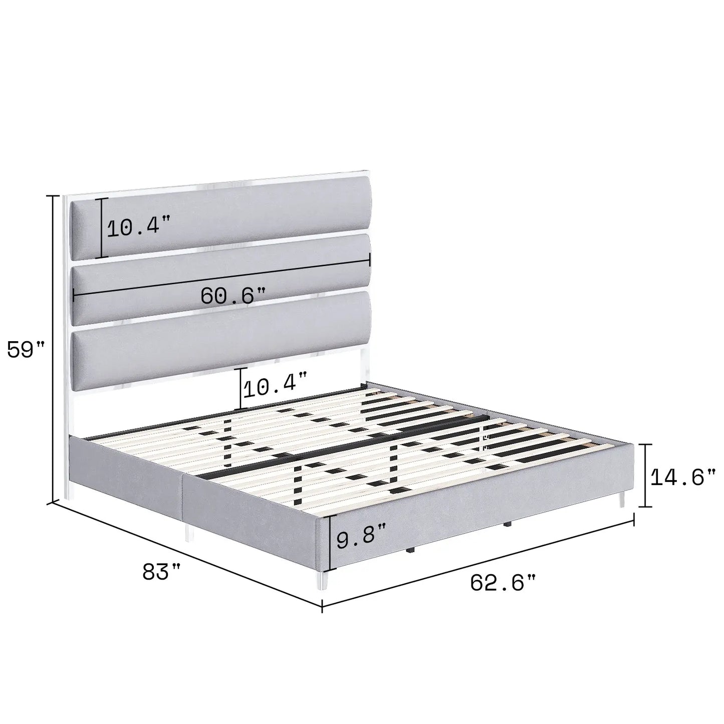 Extra tall 59" headboard with velvet upholstery makes your bed the centerpiece of bedroom, providing much more comfortable support.